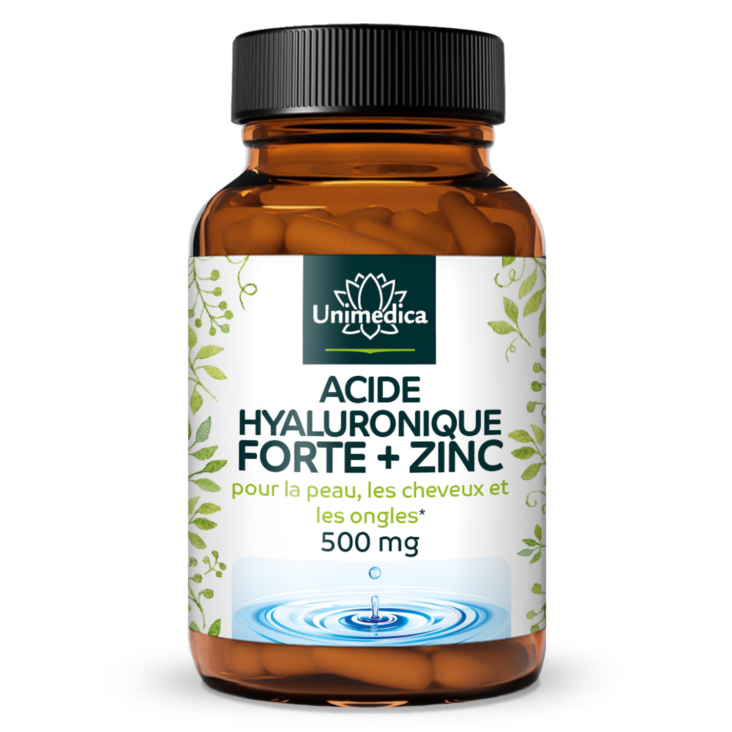 Les gélules d'acide hyaluronique forte d'Unimedica contiennent de l'acide hyaluronique hautement dosé et du zinc.