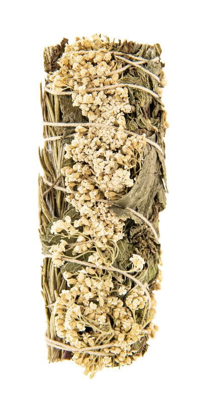 Bâtonnet d'encens composé des trois herbes : romarin, menthe poivrée et achillée millefeuille. Longueur : 10 cm. Issu de l'agriculture biologique contrôlée.