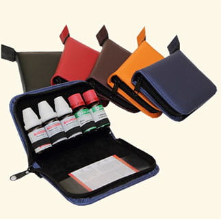 Dimensions : 14,5 x 9,5 x3 cm, taille des flacons : 7cm max, Ø 23 mm