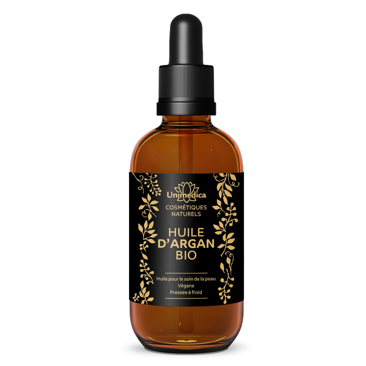 L'huile d'argan BIO d'Unimedica contient de l'huile d'argan naturelle pressée à froid, cultivée en agriculture biologique contrôlée au Maroc. L'huile d'argan BIO d'Unimedica est végane et sans additifs.