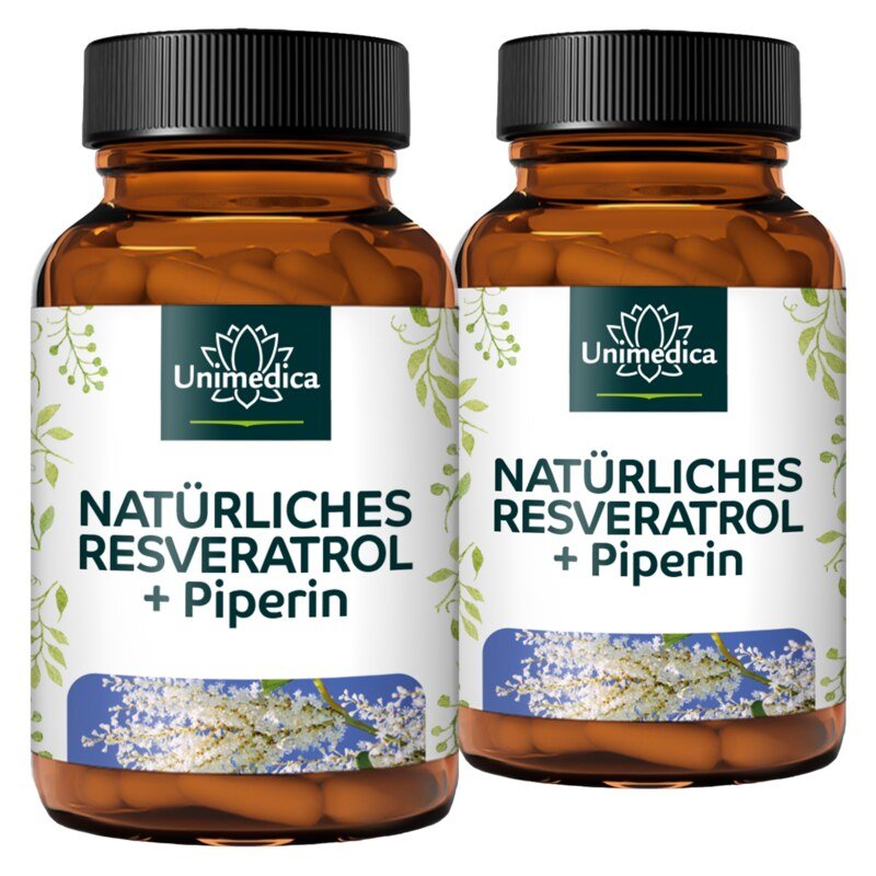 Lot de 2: Resvératrol + Pipérine - 150 mg - avec 98 % de trans-resvératrol issu de renouée de Japon - 2 x 60 gélules - par Unimedica