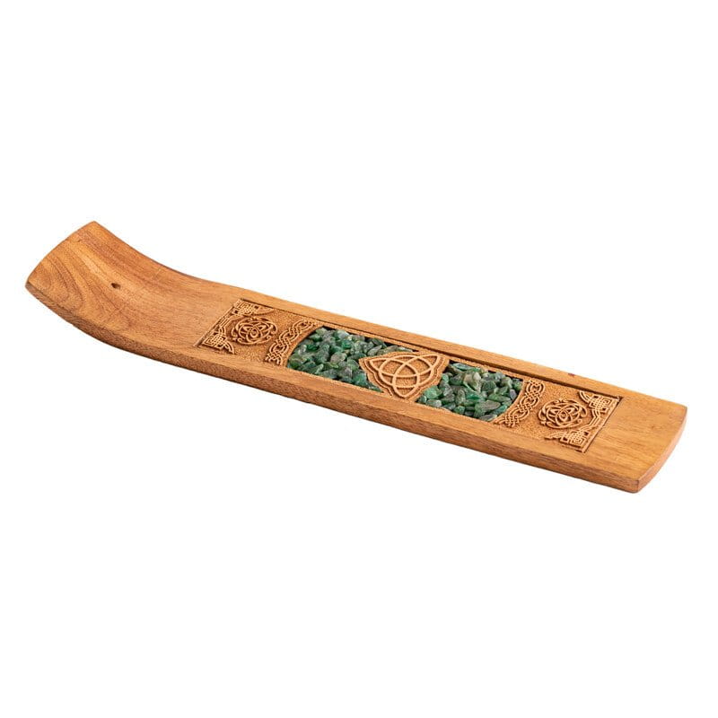 Porte-encens pour bâtons d'encens avec de fines gravures et aventurine incrustée.