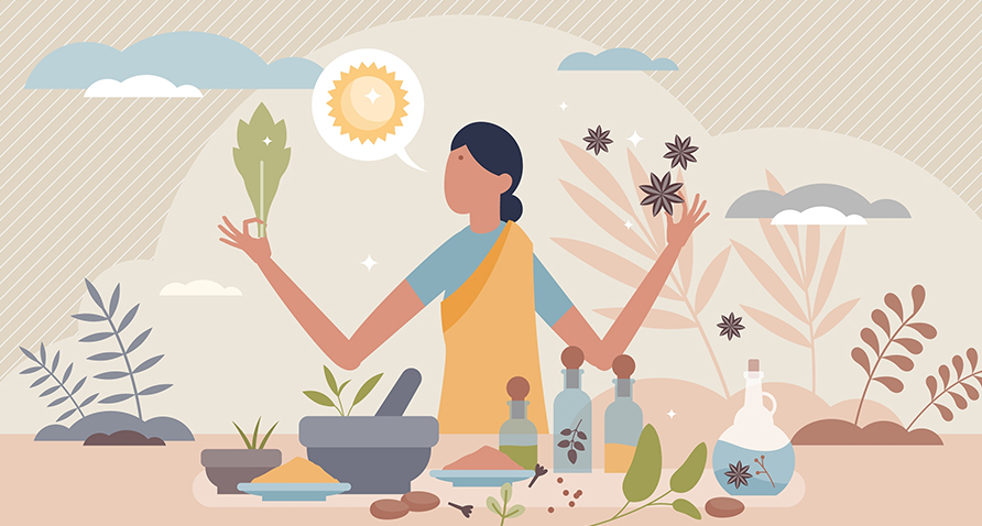 Abbildung 2: Im Ayurveda gilt die Balance der drei Konstitutionstypen (Doshas) als wichtige Voraussetzung für Gesundheit und Wohlbefinden. Dabei sollten nicht nur die Ernährung und die Tagesroutinen, sondern auch die Hautpflege an das jeweilige Dosha angepasst werden.