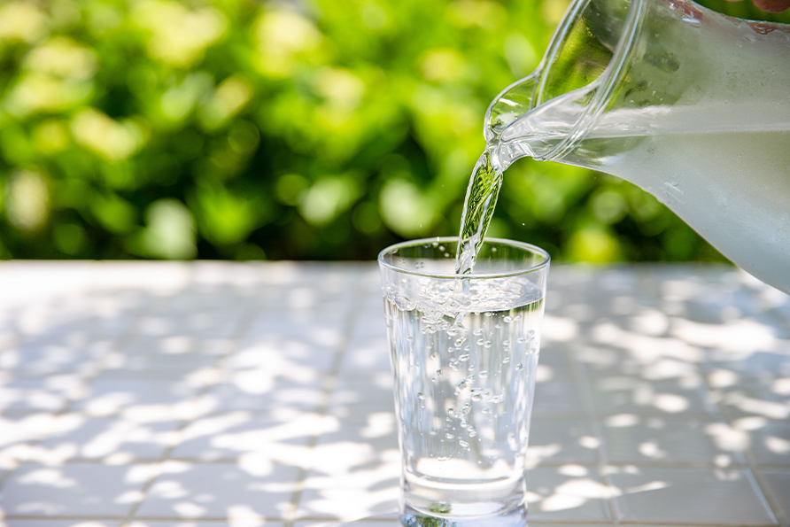Es ist allgemein bekannt, dass eine ausreichende Flüssigkeitszufuhr bei Hitze sehr wichtig ist. Dennoch vergessen viele Menschen, regelmäßig zu trinken. Da ein akutes Durstgefühl erst einsetzt, wenn der Körper bereits zu viel Wasser verloren hat, sollten Sie vorbeugend, auch ohne Durst, trinken. Es kann helfen, einen stündlichen Alarm einzurichten oder eine Wasserflasche immer in Griffweite zu haben. Da der Körper durch vermehrtes Schwitzen auch mehr Flüssigkeit verliert, muss die Trinkmenge bei Hitze entsprechend erhöht werden. Etwa zwei bis drei Liter Flüssigkeit pro Tag gelten für gesunde Erwachsene als ein guter Richtwert. Neben Wasser können Sie auch zu lauwarmem Tee oder Saftschorlen greifen. Den Konsum von Alkohol, Softdrinks oder koffeinhaltigen Getränken sollten Sie in Hitzeperioden hingegen möglichst gering halten.
