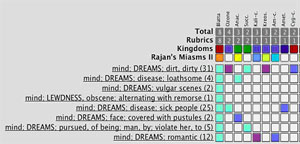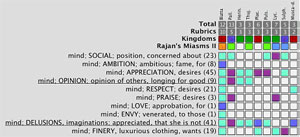 Sie hat viele Insektenmittel-Themen. Das Verlangen nach Respekt, ihr Wunsch berühmt und anerkannt zu sein und ihr Neid auf diejenigen,die berühmter sind und mehr respektiert werden. Sie hat das einzige Blatta-Symptom: „Neid oder Eifersucht auf die, die verehrt werden.“